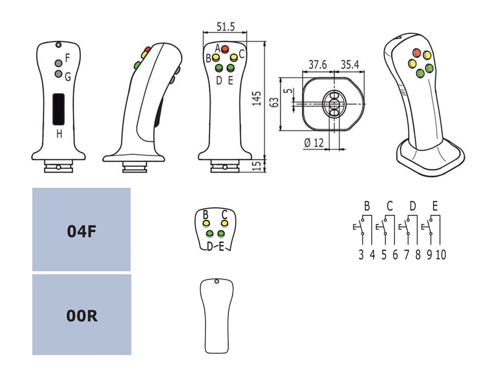 Handtag med brytare F04F-00R, kabel 700 mm